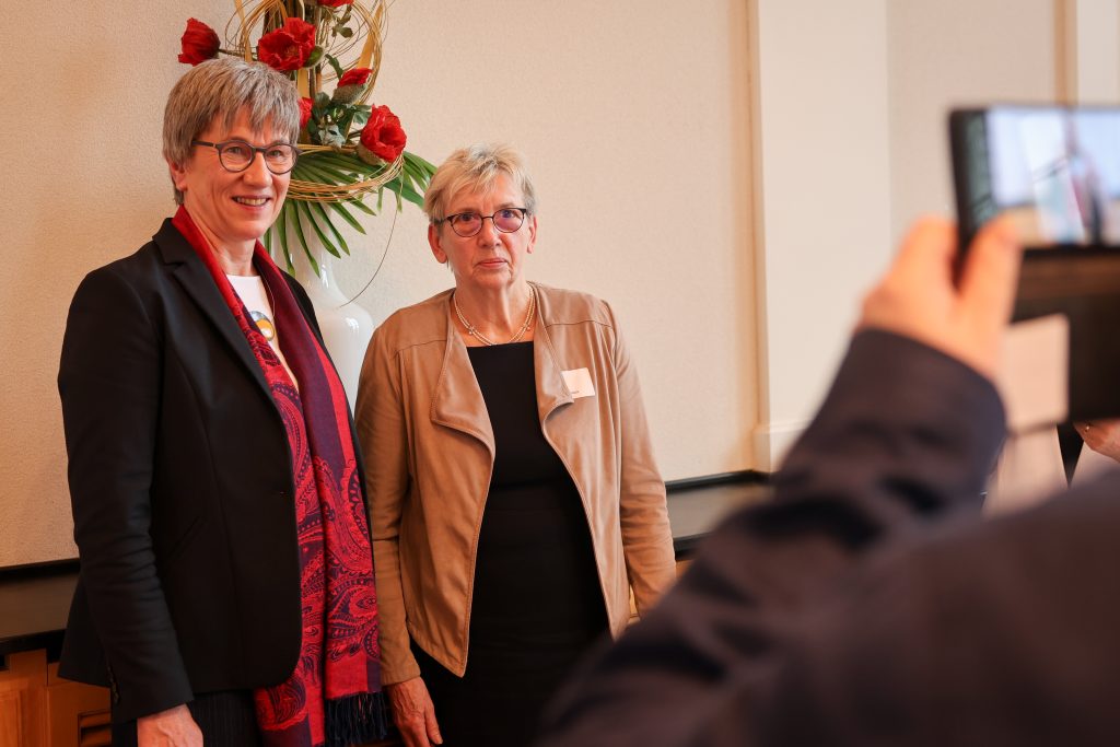 Die Fotos zeigen Birgit mit ihrer Tischbesetzung und Ministerpräsident Dr. Dietmar Woidke (Gruppe) sowie mit Ministerin und Chefin der Staatskanzlei Kathrin Schneider (einzeln).